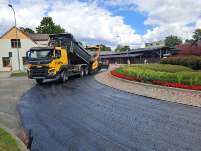 Aizputes ielas aplī uzsākta asfalta seguma ieklāšana