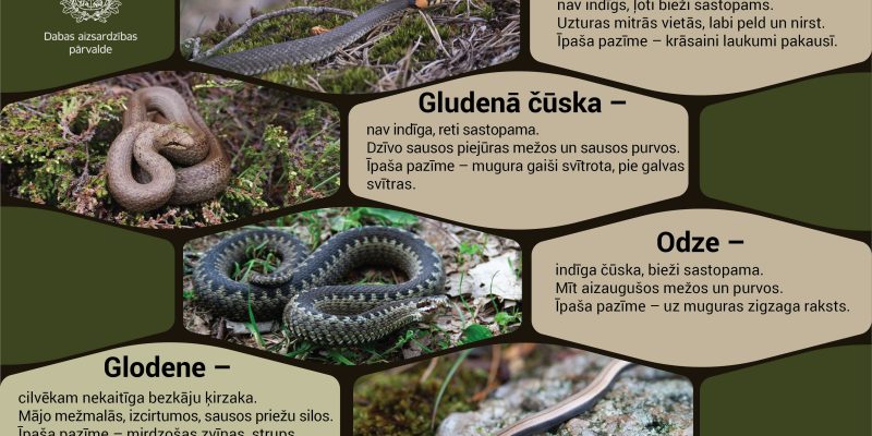 Vasaras baudīšanu ūdens tuvumā iecienījuši ne vien cilvēki, bet arī rāpuļi, tostarp čūskas. No trim Latvijā esošajām čūsku sugām ezeru, upju un mitru vietu tuvumā visbiežāk redzams zalktis Natrix natrix – cilvēkam nekaitīga čūska ar krāsainiem pusmēnešiem pakauša rajonā, ko cilvēki sauc par ausīm.