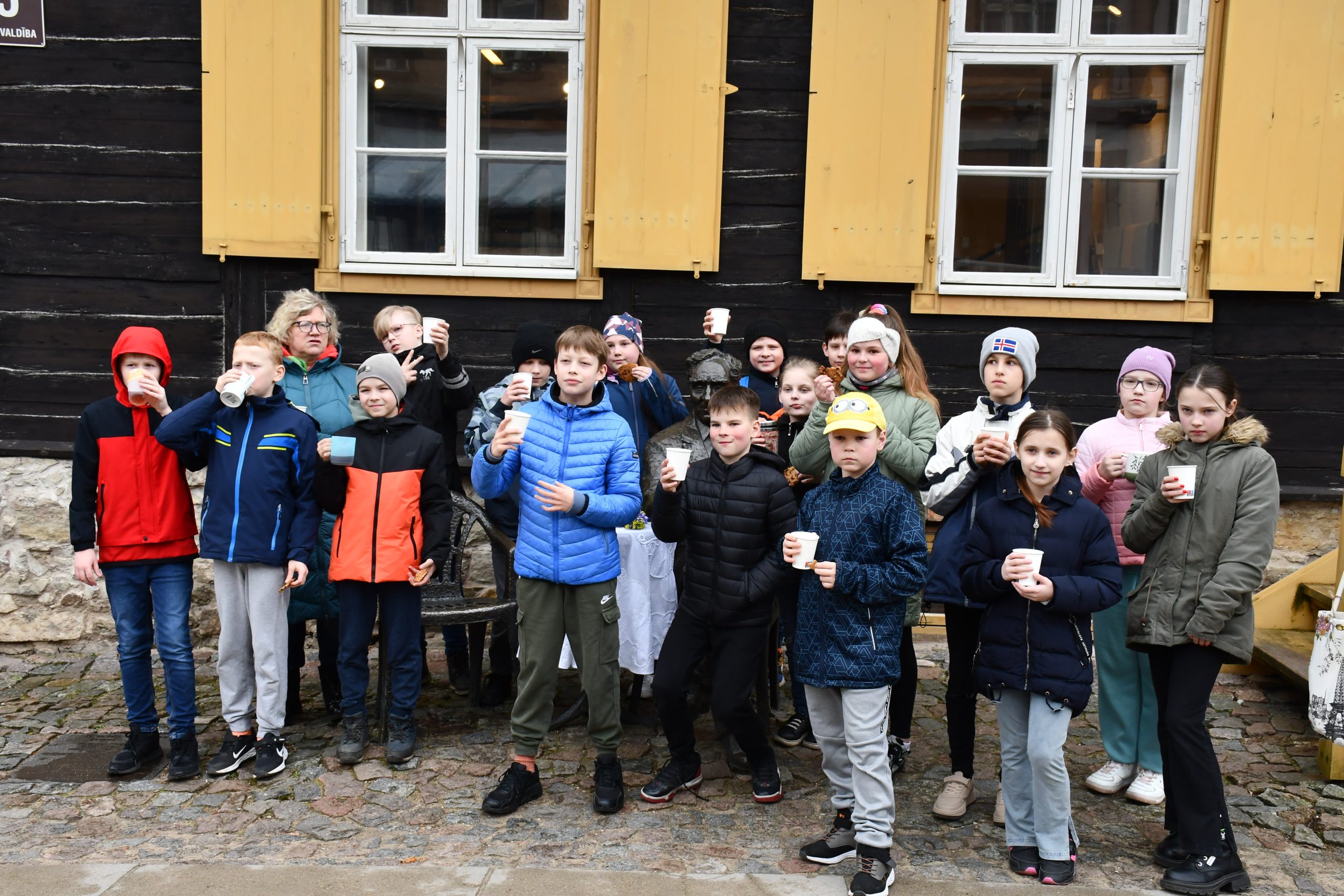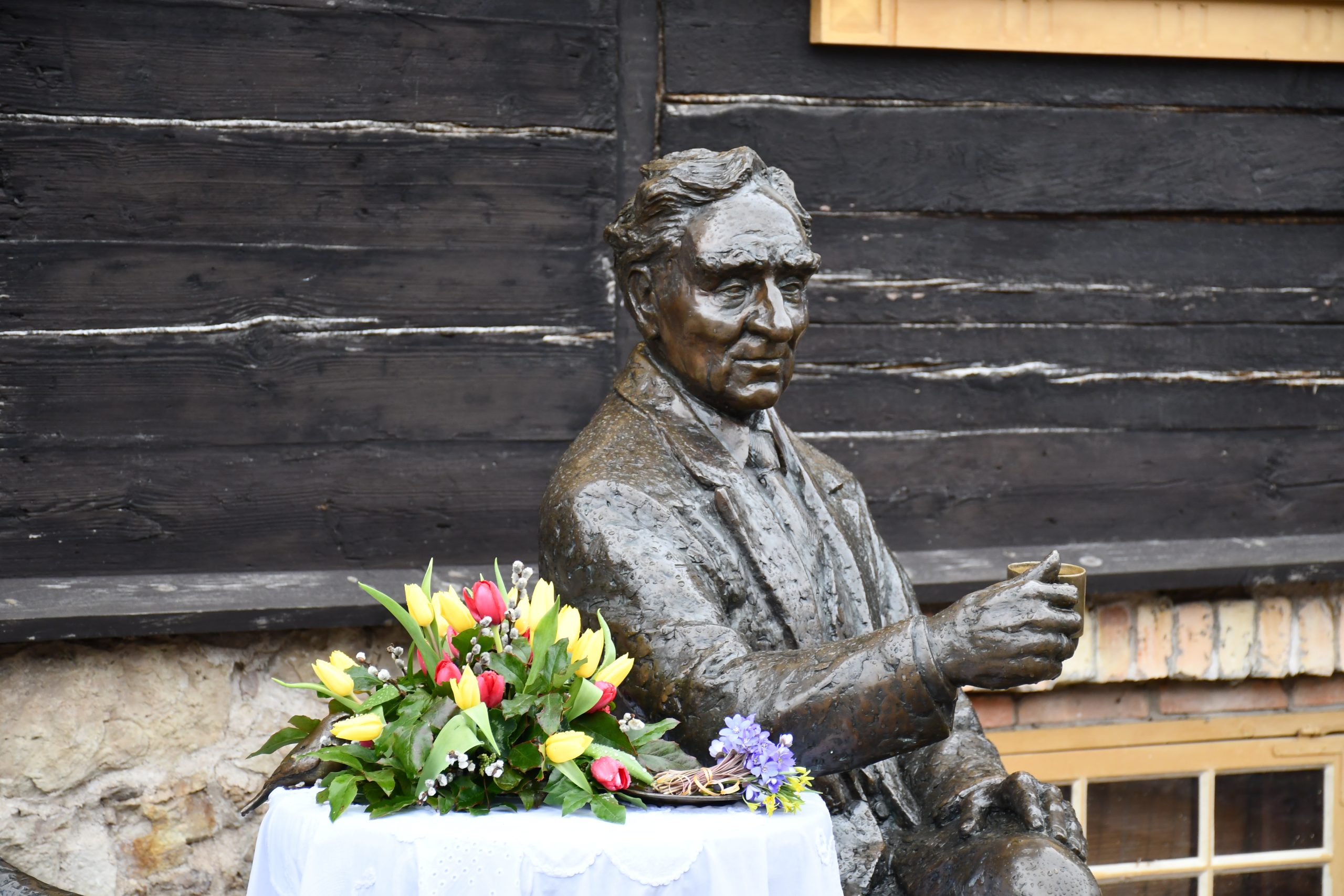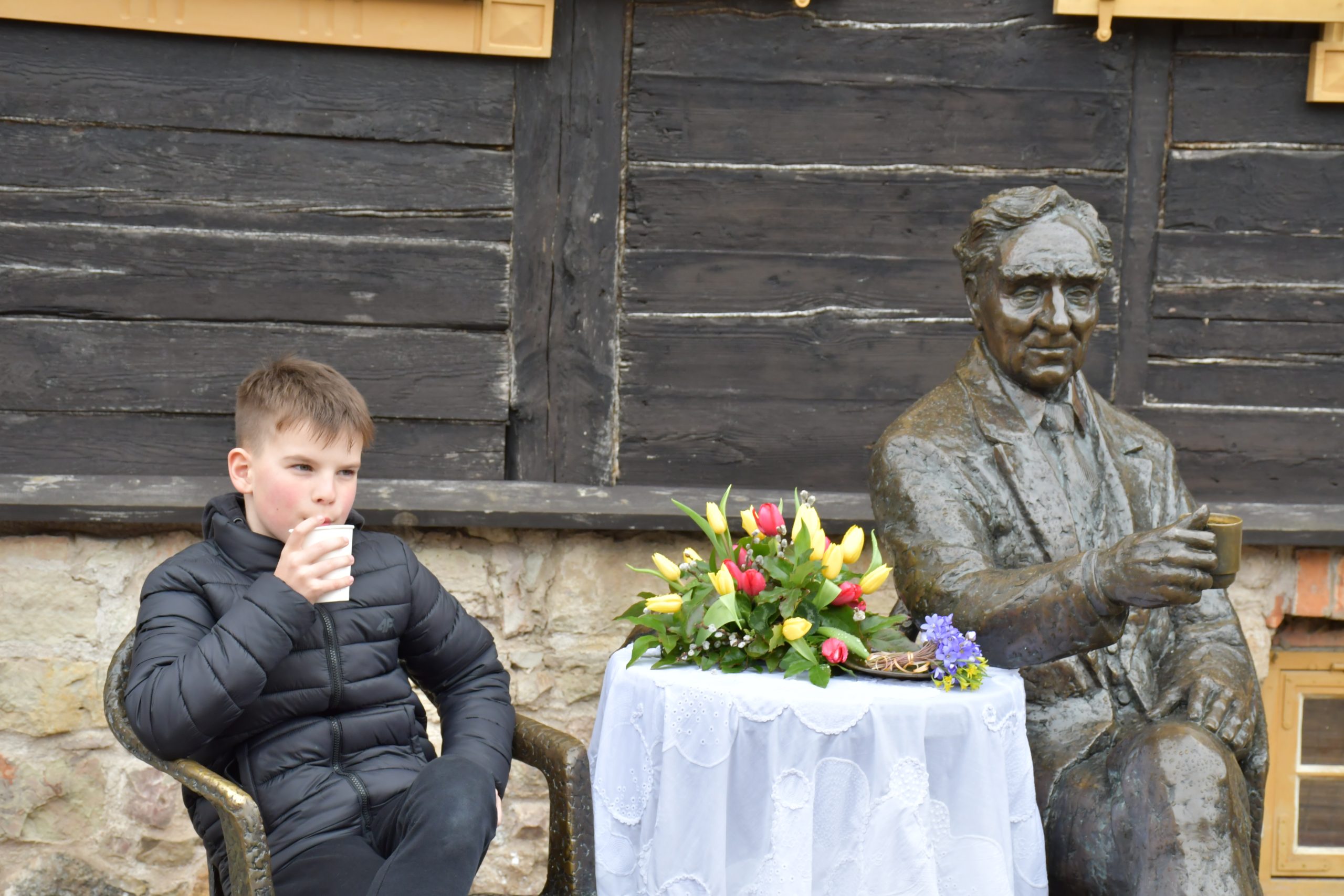 Atceries Kuldīgā zināmo leģendu – ja kāds grib nodzīvot līdz 100 gadiem, tad ir jāapsēžas blakus māksliniekam un jāiedzer tēja.