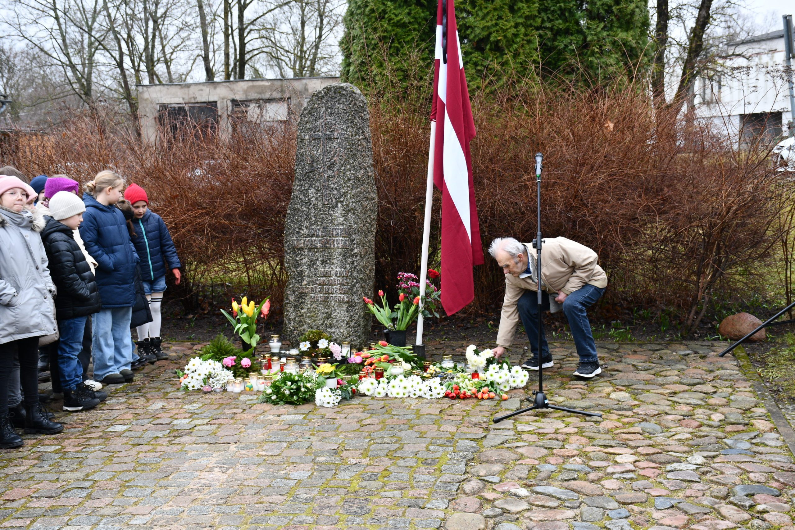 - Lēnās komunistiskā genocīda upuru piemiņas brīdis, ziedu un svecīšu nolikšana pie represēto piemiņas akmens norisināsies 12.45.