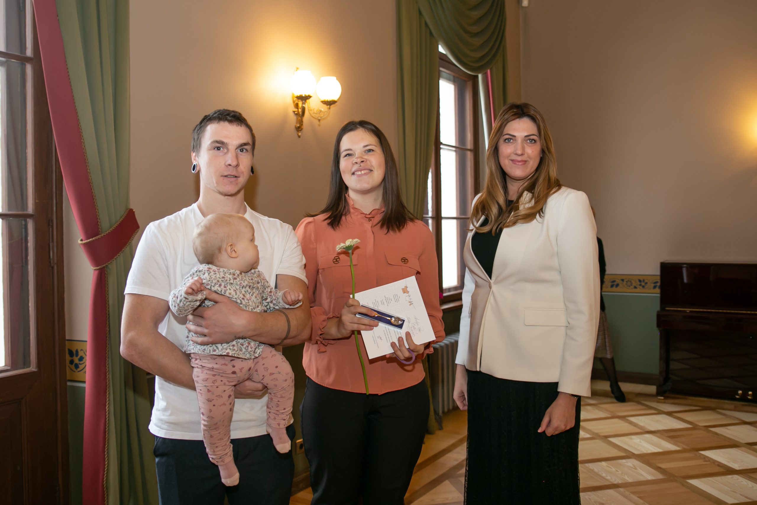 Šonedēļ Kuldīgas novada Domē viesojās paši jaunākie Kuldīgas novada iedzīvotāji – viņi kopā ar vecākiem, brālīšiem un māsiņām bija atnākuši pēc piemiņas dāvaniņas – sudraba karotītes, kas vienmēr atgādinās par dzimto vietu. Šī gada pirmajos sešos mēnešos Kuldīgas novada dzimtsarakstu nodaļā reģistrēti 139 bērniņi –  68 meitenes un 71 zēns, kas ir par 22 mazuļiem vairāk nekā pērn šādā pašā laika posmā.