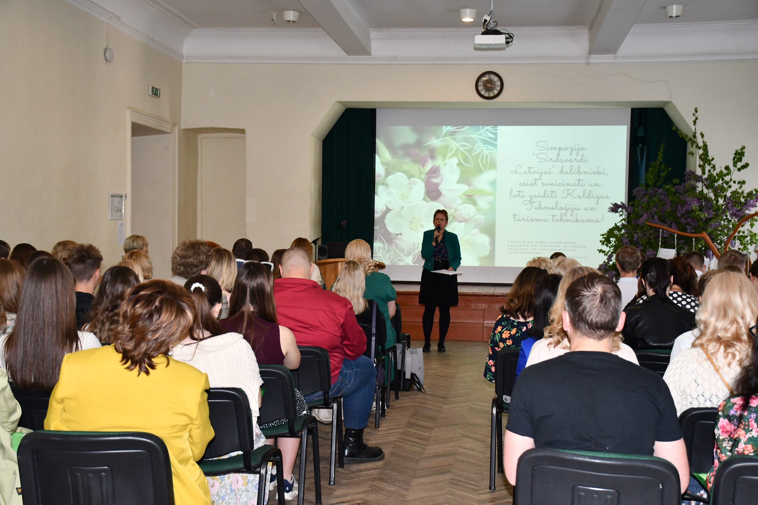 2024. gada 17.maijā Kuldīgas Tehnoloģiju un tūrisma tehnikumā (KTTT) viesojās vairāk nekā 70 skolnieki un skolotāji no 20 izglītības iestādēm, kuri piedalījās jaunatnes radošajā mākslu simpozijā “Sirdsvārdi Latvijai”. Simpozija dalībniekus sveica KTTT direktora p.i. Iveta Bērziņa, uzsverot, ka tehnikumā turpinās labi iesāktās kultūrizglītības tradīcijas. Savukārt Kuldīgas novada Domes priekšsēdētāja Inese Astaševska novēlēja konkursantiem turpināt būt radošiem un dāvināja visiem literārām piezīmēm Kuldīgas novada blociņus. UNESCO Latvijas Nacionālās komisijas Izglītības sektora vadītāja Elīna Bērziņa savā uzrunā novelēja jauniešiem neapstāties pie jau sasniegtā un izvirzīt arī jaunus mērķus. Valsts izglītības satura centra Komunikācijas nodaļas vadītāja Jana Veinberga, uzrunājot jauniešus, akcentēja, saprot jauniešus, kuri ļāvušies izaicinājumam iedziļināties V.Plūdoņa daiļradē un darbos, un par viņa citātiem sacerējuši ļoti daudzveidīgus darbus. Simpozija atbalstītāja, SIA “ Amazone” valdes locekle izteica pateicību skolotājiem, kuru darbs ir kā misija veidot Latvijas nākotni, ieliekot bērnos un jauniešos dzīvei svarīgās garīgās vērtības.