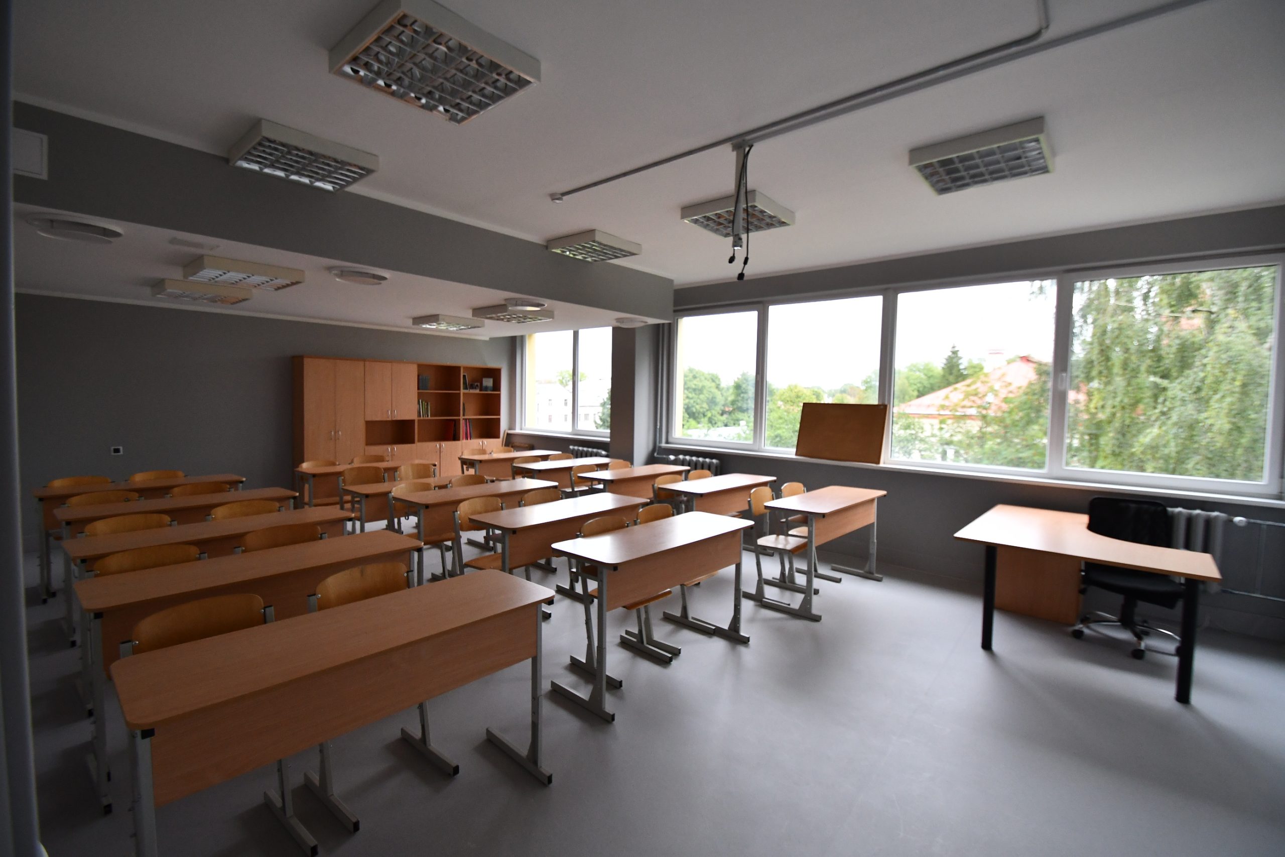 Kuldīgas Centra vidusskola lepojas ne tikai ar skaistu interjeru, bet arī jaunu aprīkojumu – 50 datoriem un 25 planšetēm, ekrāniem stundu sarakstiem un paziņojumiem, TV un interaktīvām tāfelēm, kā arī modernām un ergonomiskām mēbelēm – krēsliem, galdiem, mobiliem plauktiem, kas piemēroti mācību materiālu uzglabāšanai.