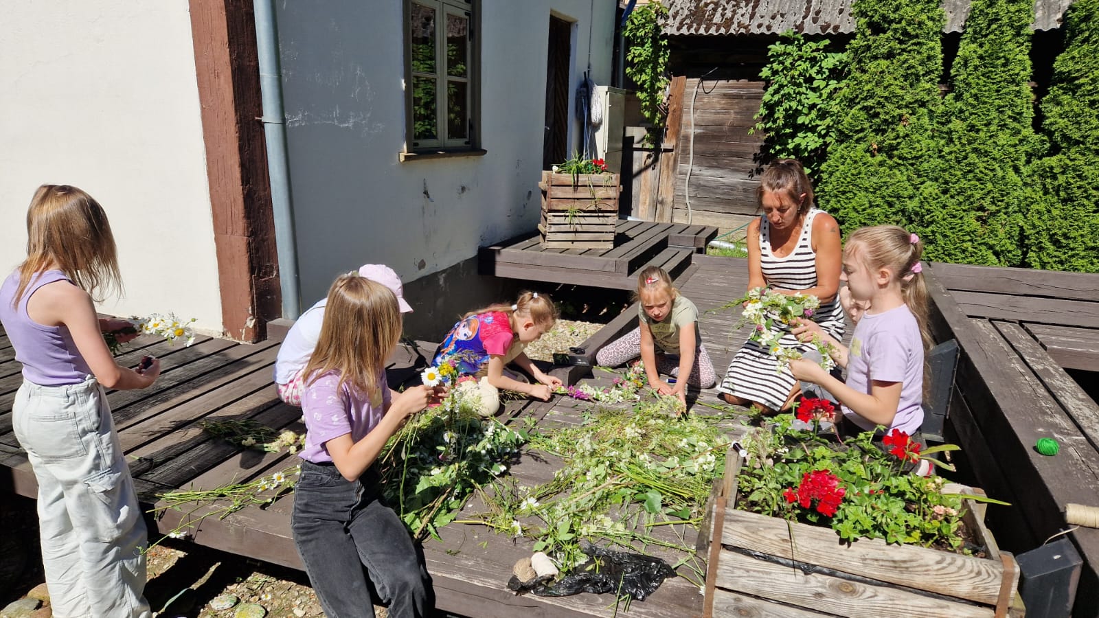 Trīs dienas bērni no Ukrainas apguva Saulgriežu tradīcijas – kā Jāņus atzīmē Latvijā, un kā tos svin Ukrainā. Pedagogi un bērni atrada daudz kopīgu lietu abu tautu tradīcijās. Radošajās nodarbībās bērni iepazinās ar roku darinātām senajām rotām, paši taisīja Jāņu sieru, kā arī cepa raušus un pīrāgus.